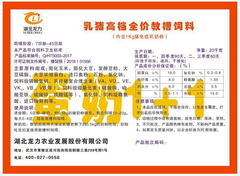 湖北龍力農(nóng)業(yè)發(fā)展股份有限公司坐落于武漢市黃陂區(qū)前川街向陽(yáng)街群順三里298號(hào)附1號(hào)。公司成立于2014年6月,公司自成立以來(lái)把“創(chuàng)全球最大養(yǎng)豬綜合服務(wù)”為企業(yè)愿景。致力于打造教保料品牌”作為公司發(fā)展的明確目標(biāo)。公司一直致力于豬營(yíng)養(yǎng)的研究和開(kāi)發(fā),積極與國(guó)內(nèi)外高校和科研機(jī)構(gòu)合作,推廣養(yǎng)豬技術(shù)、動(dòng)物營(yíng)養(yǎng)新概念,向世界農(nóng)牧企業(yè)學(xué)習(xí)與合作。公司采用國(guó)內(nèi)先進(jìn)的生產(chǎn)工藝,選擇高精度電子配料秤,高均勻度、無(wú)殘留混合機(jī)等先進(jìn)設(shè)備....
